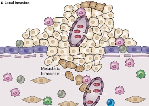 使腫瘤細胞生存下來,並穿過基底膜,產生擴散