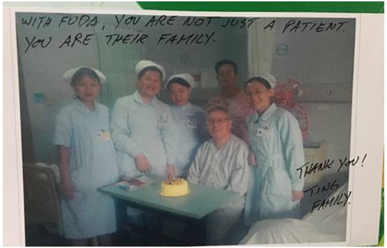田伯的兒子在照片上寫道:“在復大,你不僅僅是一個病人,你是他們的家人。”