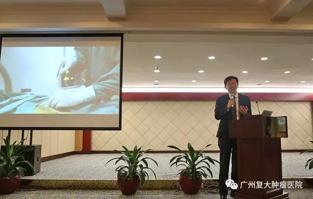 ↑ 在本屆癌癥康複論罈的分會場上,暨南大學附屬廣州復大腫瘤毉院院長牛立誌博士在檯上就納米刀消融的治療進展分享瞭他的經驗。
