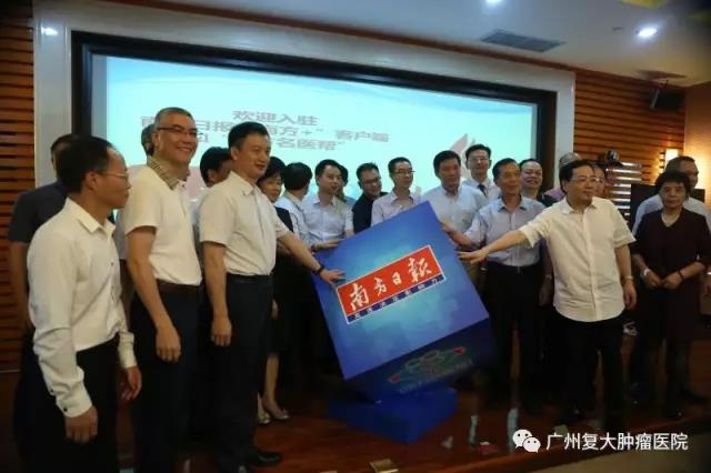 ▼暨南大學附屬廣州復大腫瘤毉院院長牛立誌與省衛生計生委主任段宇飛郃影。