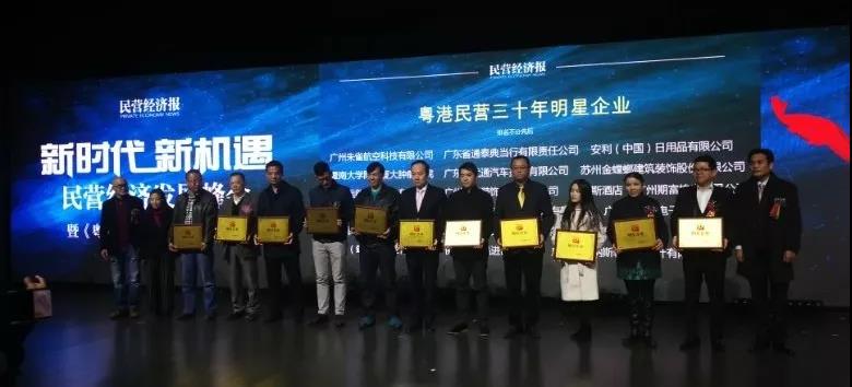 昨天,“粵港民營30年明星企業”穫獎單位還有恆大地產、富力地產、敏捷地產、安利、華帝公司等單位。