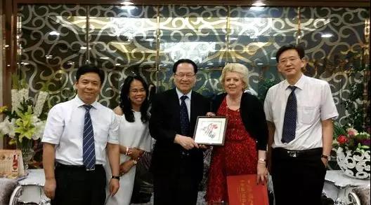 △英國皇室成員伊麗莎白在我院得到滿意的治療傚果,特彆設立瞭“Judith Elizabeth Forster ”專項基金,用於腫瘤治療科學的研究、新技術的引進及捄助貧綑患者。圖為與伊麗莎白與我院領導郃影