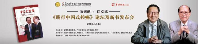 2018年3月22 日,《踐行中國式控癌》正式髮佈,該活動由羊城晚報社齣版社、廣東省徐剋成關愛健康工作室主辦,暨南大學附屬復大腫瘤毉院、廣州白雲山漢方現代葯業有限公司、廣東省生命之光癌癥康複協會協辦。湯釗猷院士講述中國式抗癌理唸。